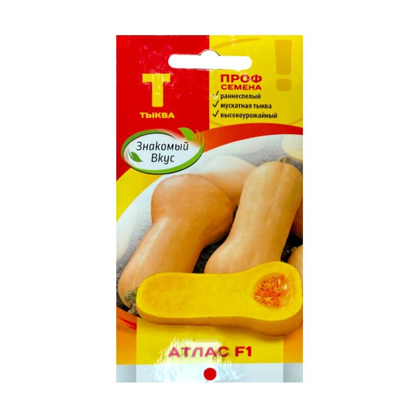 Семена тыквы Атлас F1. АТЛАС F1 – это очень пластичный гибрид тыквы с крупными плодами отличного качества до 3-х кг. Благодаря мощному растению гибрид хорошо сопротивляется болезням и завязывает плоды на протяжение длительного периода, в том числе и при прохладных температурах, хотя в этом случае плоды будут меньше. Вкус мякоти Атласа расценивается как отличный с высоким содержанием сахара, цвет как улучшенный. (Не рекомендуется увеличивать густоту более чем 12 000 растений на гектар и поливать во второй половине дня. Также не нужно допускать внесение избыточных удобрений, особенно азотных.)